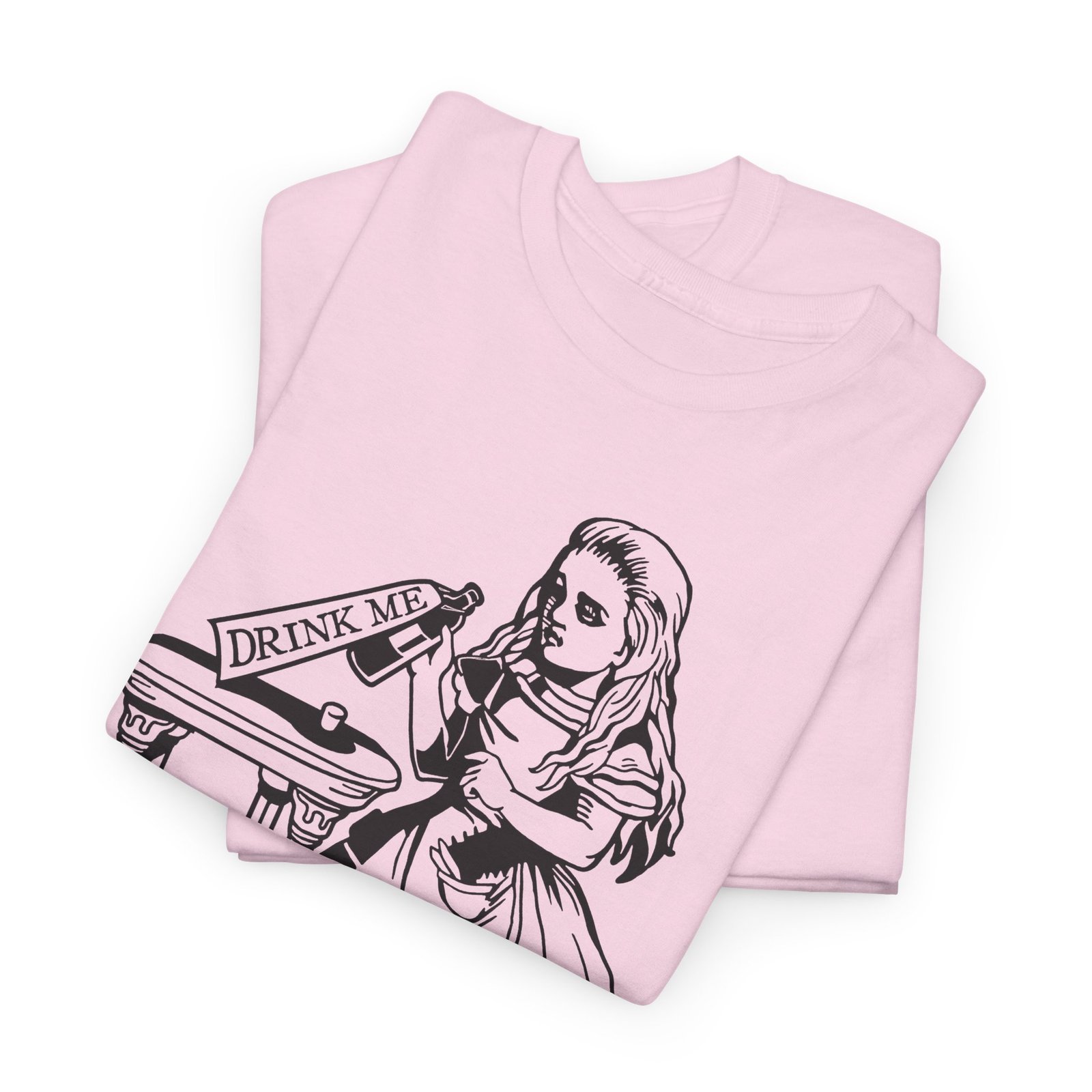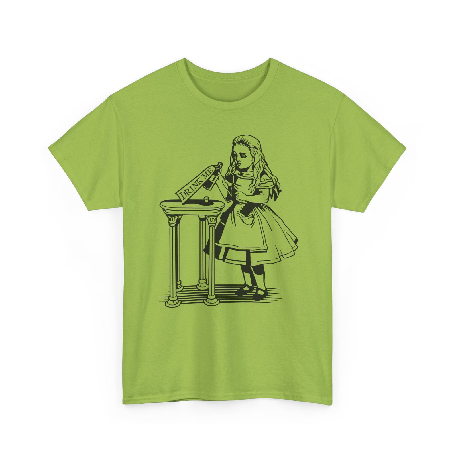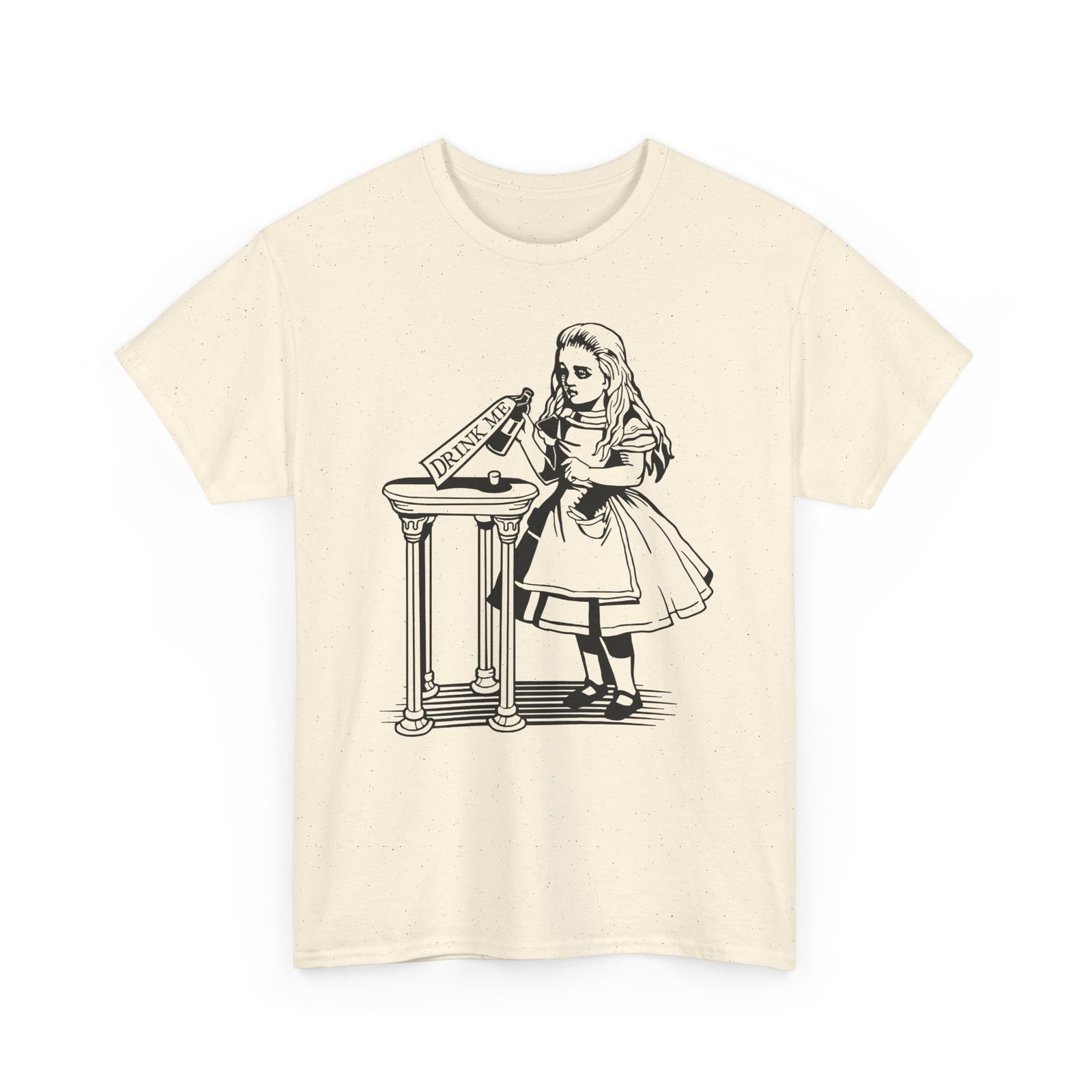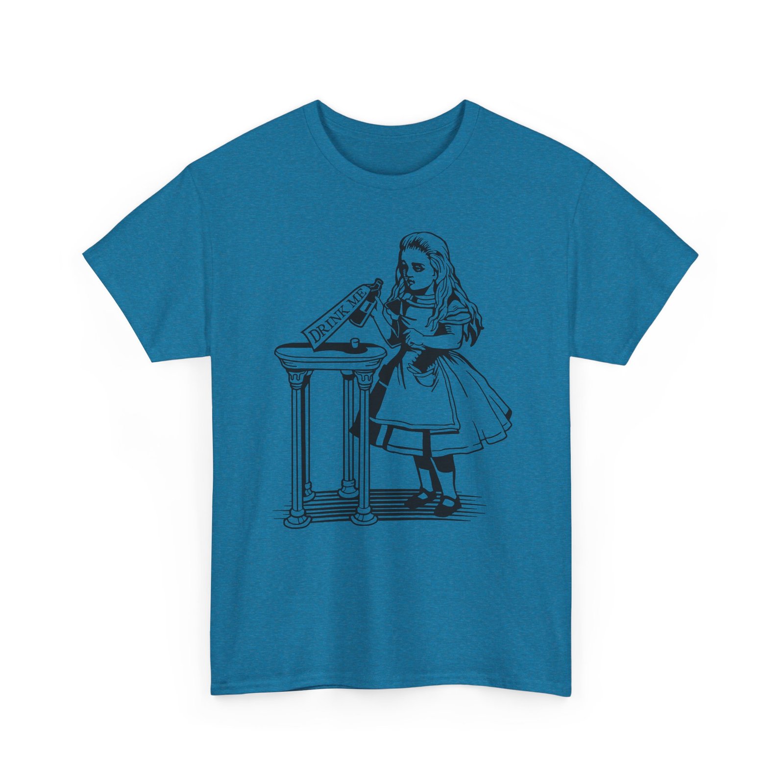 Drink Me t-shirt, Alice in Wonderland shirt, classic literature tee, Wonderland bottle shirt, unisex heavy cotton tee, Lewis Carroll shirt, vintage storybook shirt, literary gift idea, whimsical graphic tee, book lover t-shirt, fantasy story tee, Wonderland apparel, Alice themed gift, classic illustration shirt