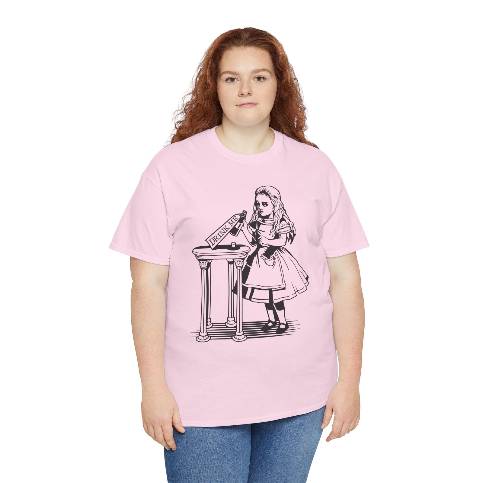 Step into Wonderland with our “Drink Me” Unisex Heavy Cotton T-Shirt, inspired by one of the most iconic symbols in Alice in Wonderland. Featuring a classic-style illustration of the famous bottle, this tee brings storybook nostalgia and literary charm to your everyday wardrobe.