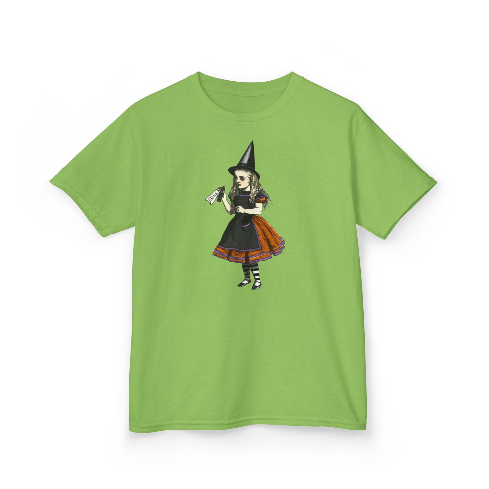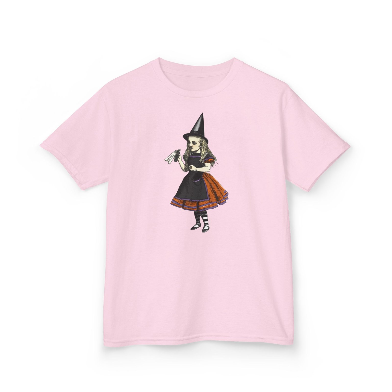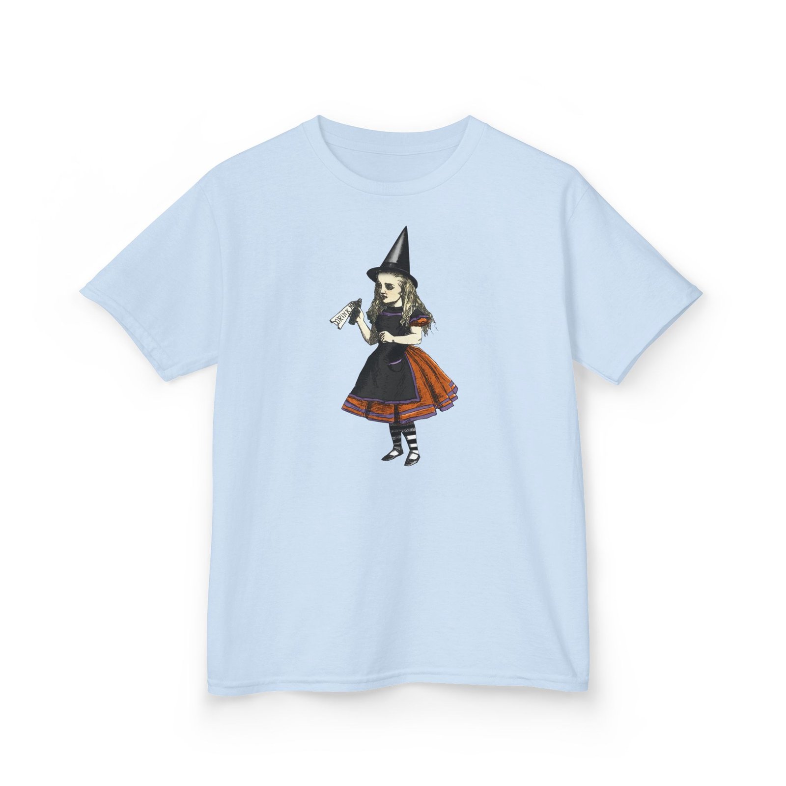 Drink Me kids shirt, Halloween witch t-shirt kids, Alice in Wonderland kids tee, spooky kids costume shirt, heavy cotton kids tee, Wonderland Halloween shirt, cute witch kids top, whimsical kids clothing, storybook kids shirt, book lover kids gift, trick or treat tee, Halloween costume kids