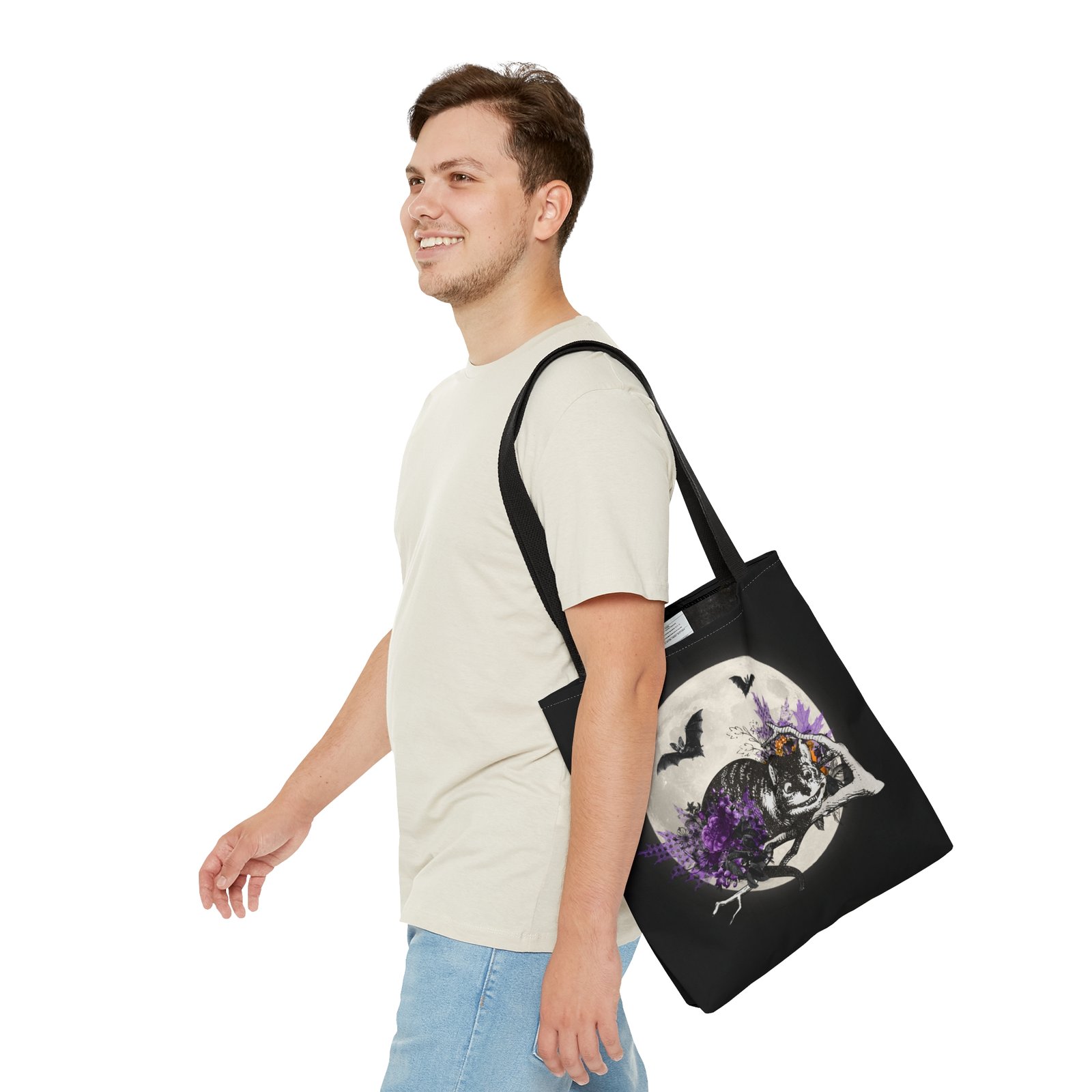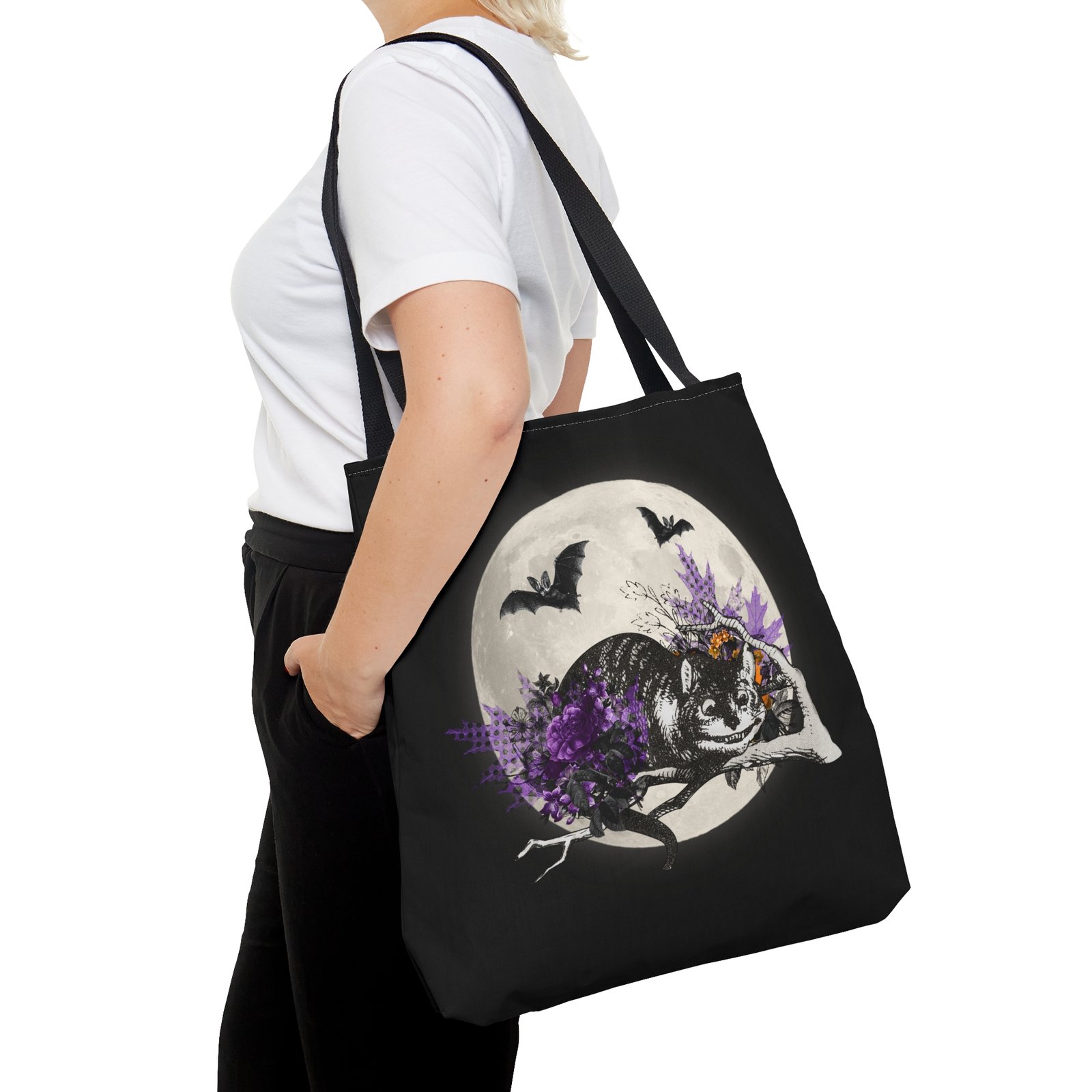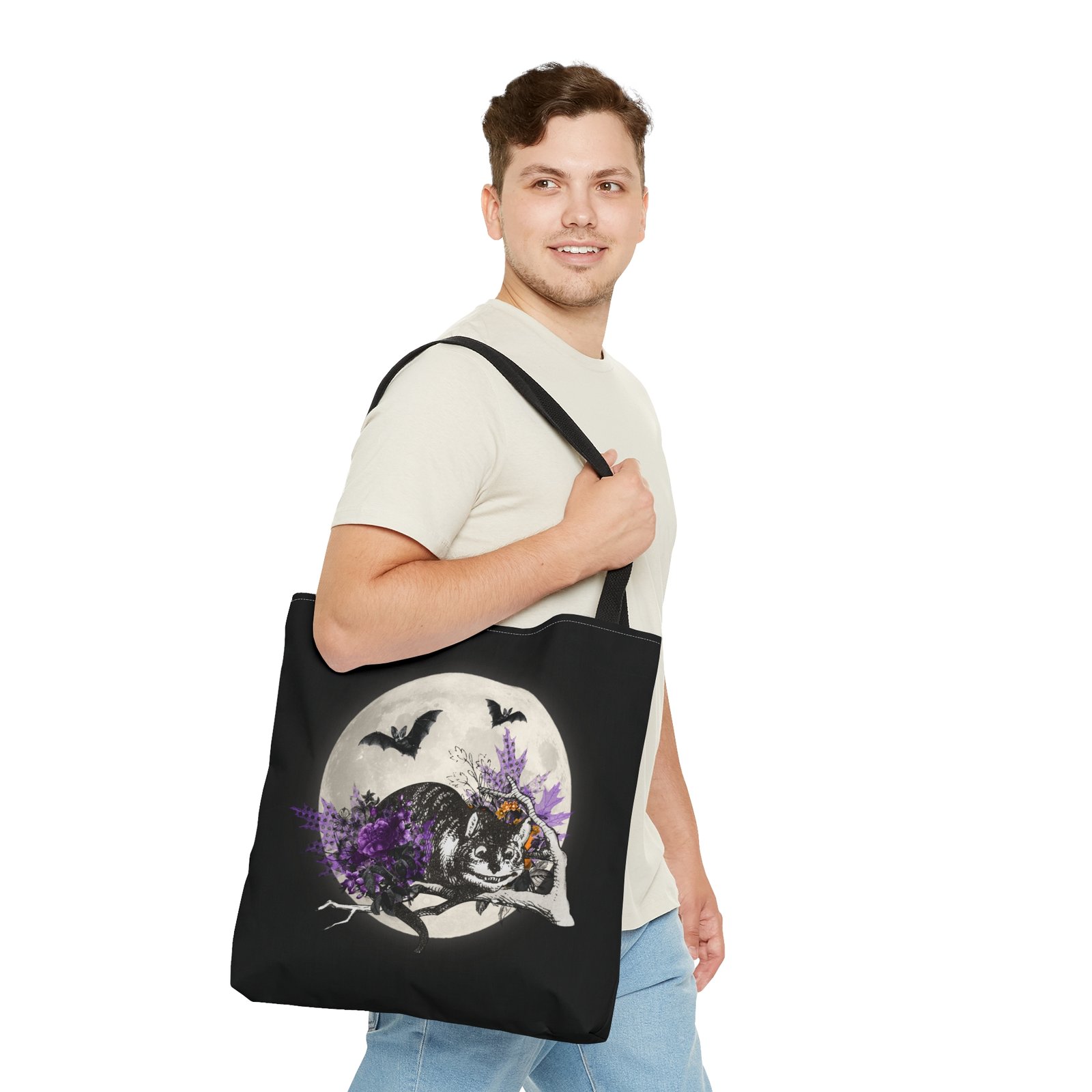 Made from durable materials with a vibrant, long-lasting print, it’s ideal for trick-or-treating, fall outings, school, errands, books, groceries, or everyday use. Whether you’re a Cheshire Cat fan, a Halloween lover, or someone who enjoys unique fantasy accessories, this tote bag adds magical charm to every adventure.
