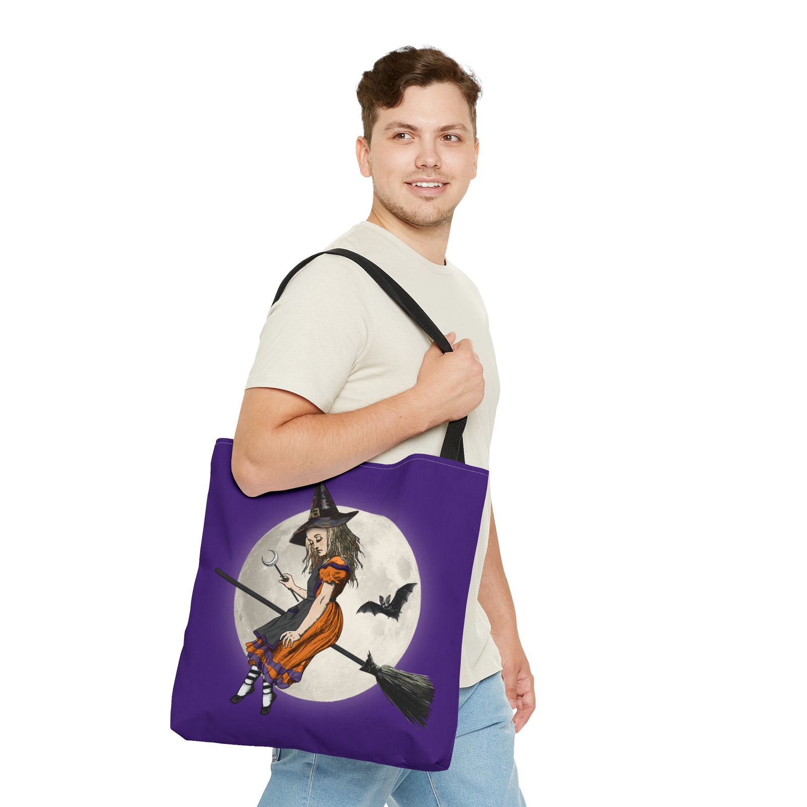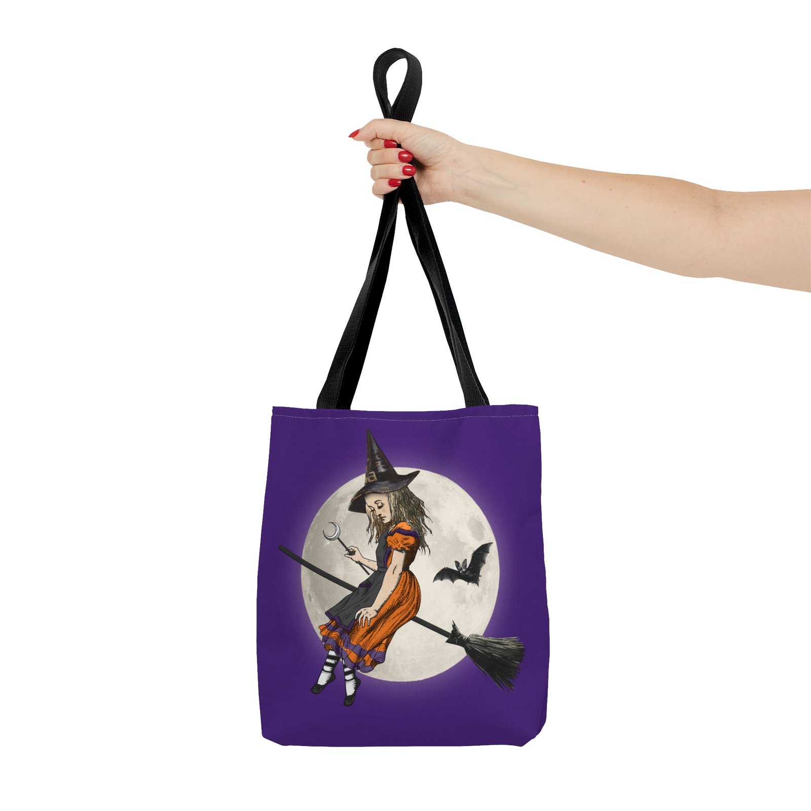 Add a spellbinding twist to your everyday carry with our Halloween Witch Alice Riding Broom Tote Bag. Blending Wonderland whimsy with spooky-season style, this enchanting design features Alice reimagined as a Halloween witch—complete with broom, magic, and playful charm.