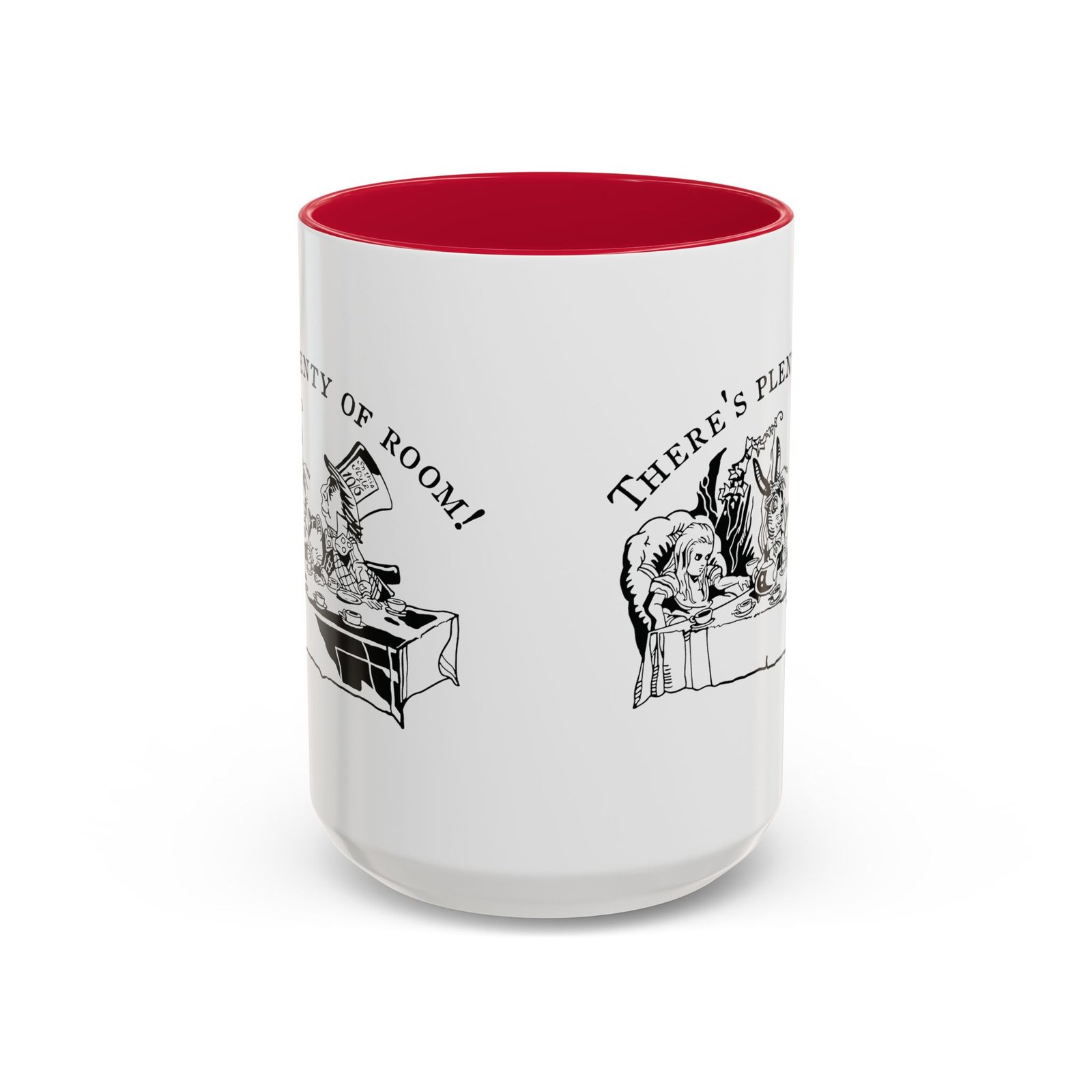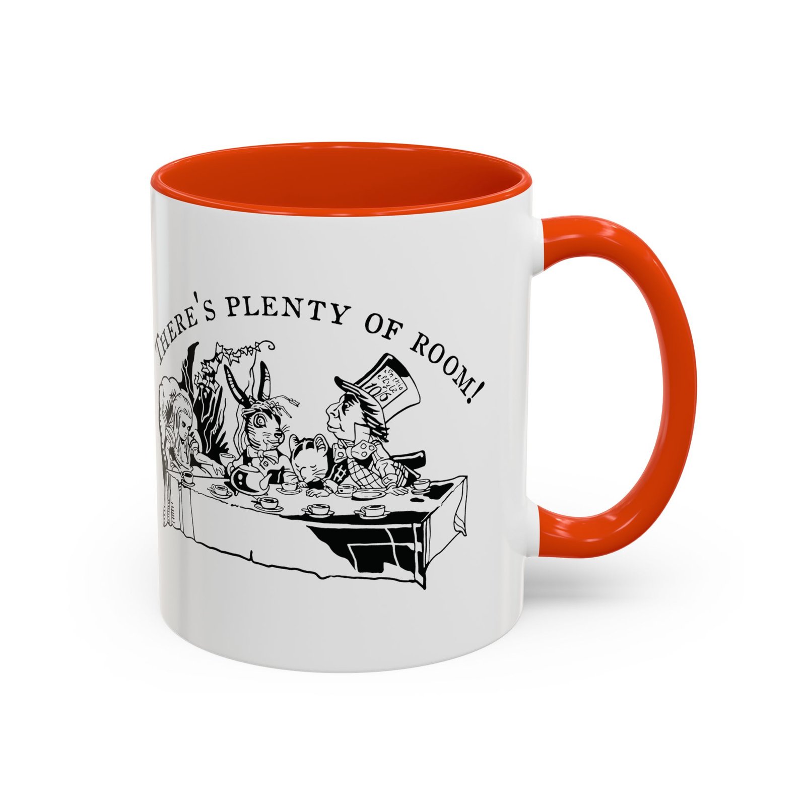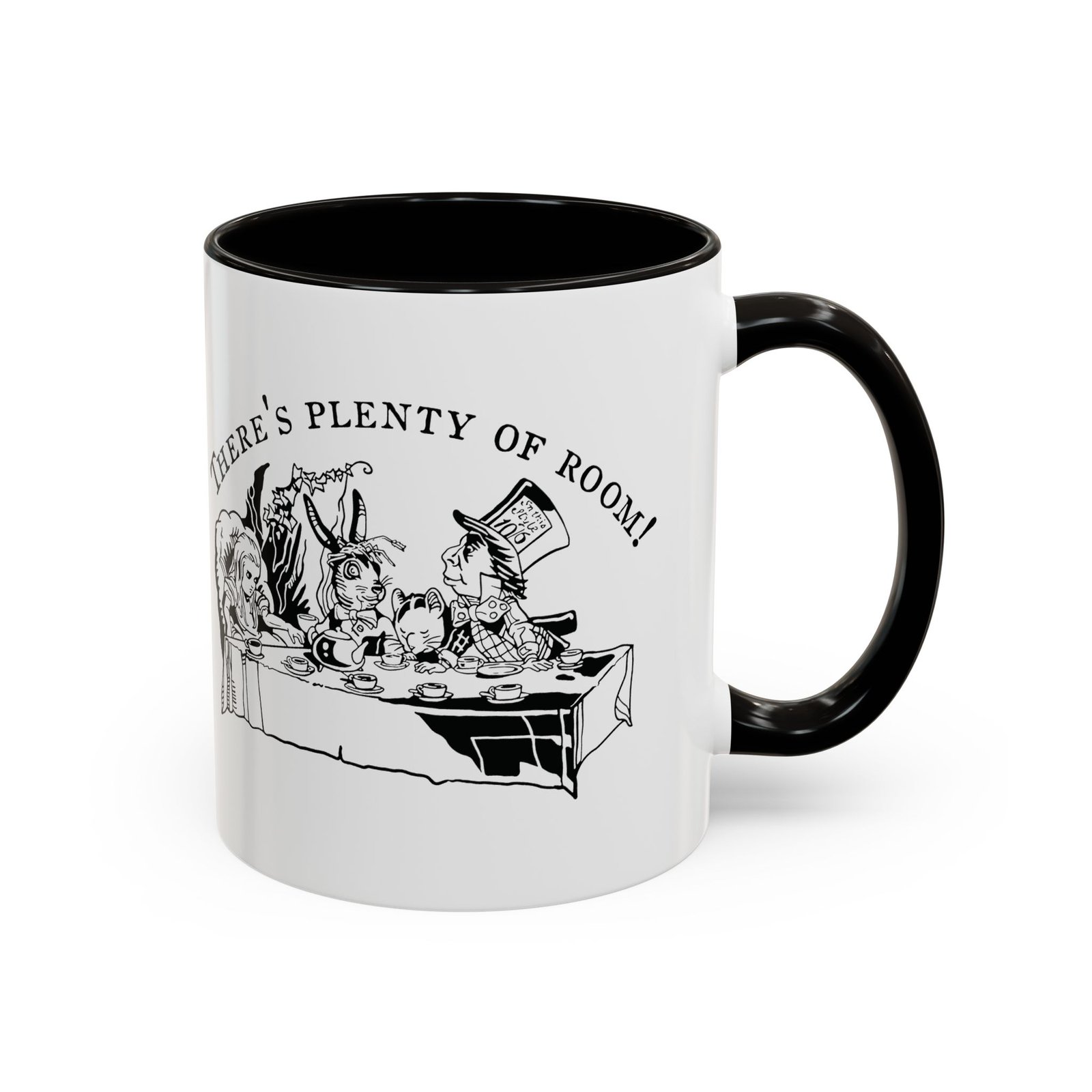 Mad Hatter Tea Party mug, Alice in Wonderland mug, color accent mug, vintage Alice illustration, black and white illustration mug, ceramic mug, 11oz mug, 15oz mug, literary mug, classic literature gift, Wonderland tea cup, book lover mug, Lewis Carroll art, storybook illustration, whimsical coffee mug, tea lover gift