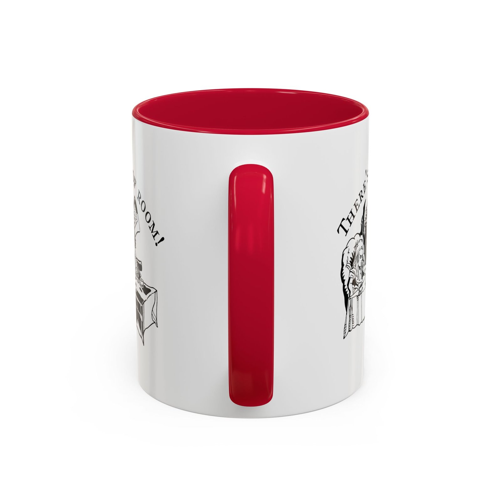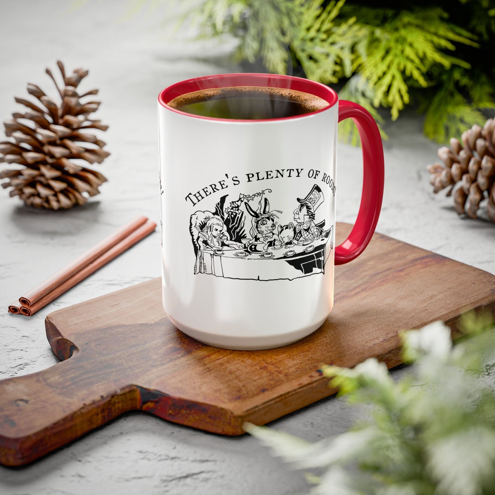 The bold color accent interior and handle add a modern pop that contrasts beautifully with the classic monochrome artwork. Available in 11oz or 15oz, this ceramic mug is perfect for tea time, coffee breaks, or your own curious rituals—no invitations required.