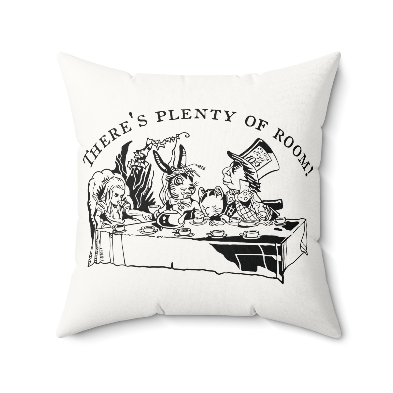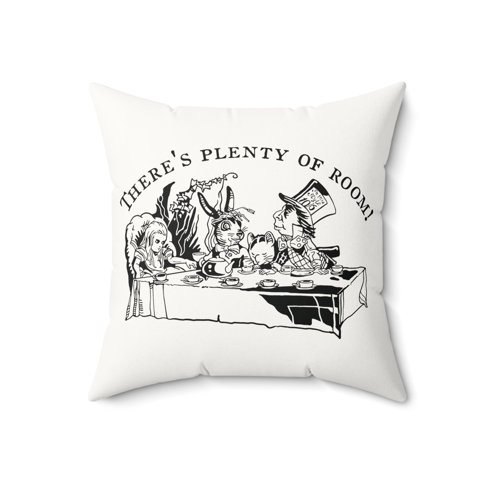 Mad Hatter Tea Party pillow, Alice in Wonderland throw pillow, faux suede pillow, vintage Alice illustration, black and white literary art, classic literature décor, book lover gift, Wonderland décor, Lewis Carroll art, storybook illustration pillow, whimsical home décor, cottagecore décor, aesthetic throw pillow
