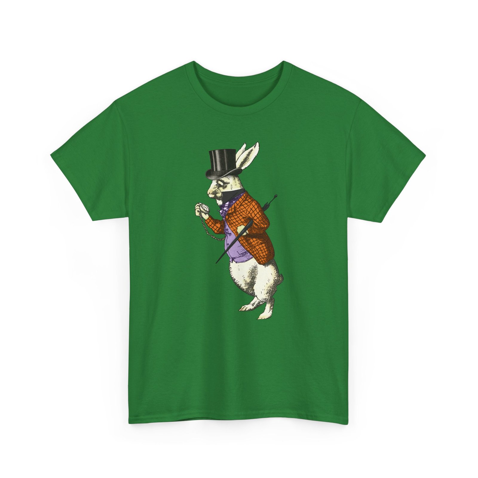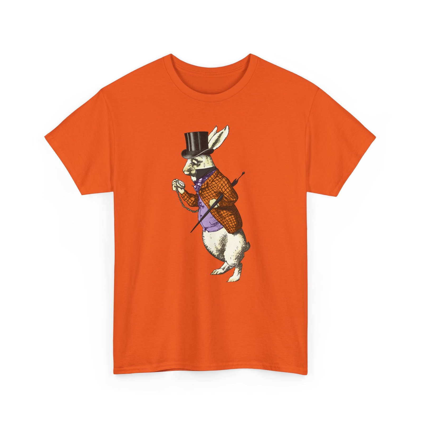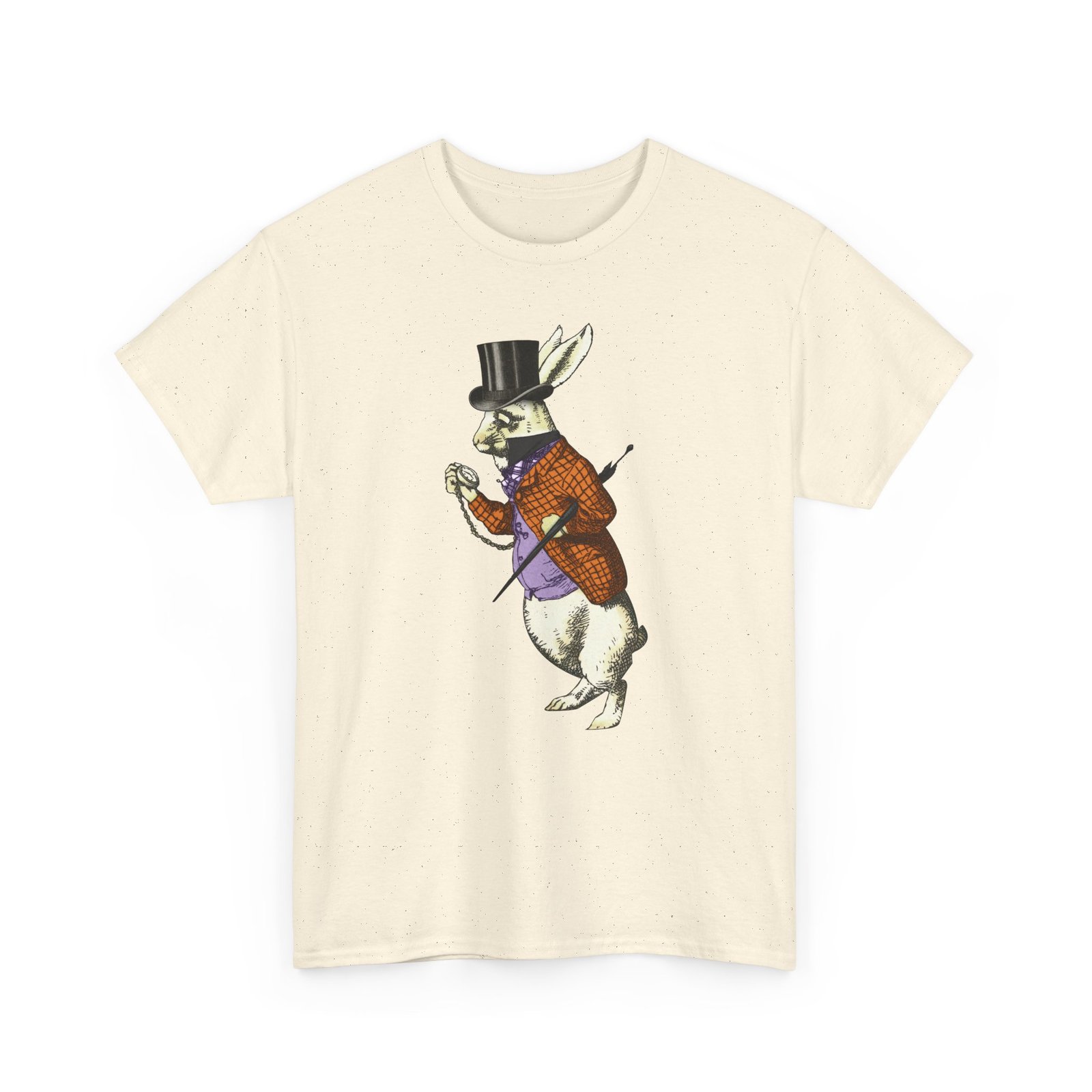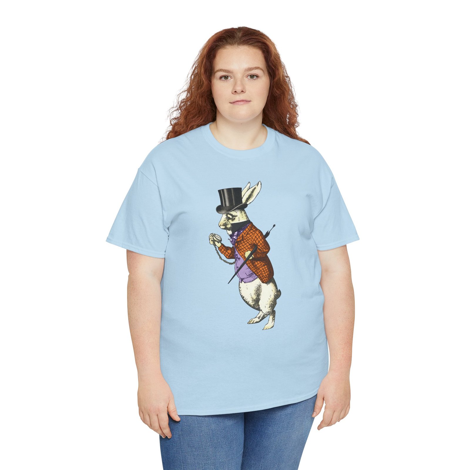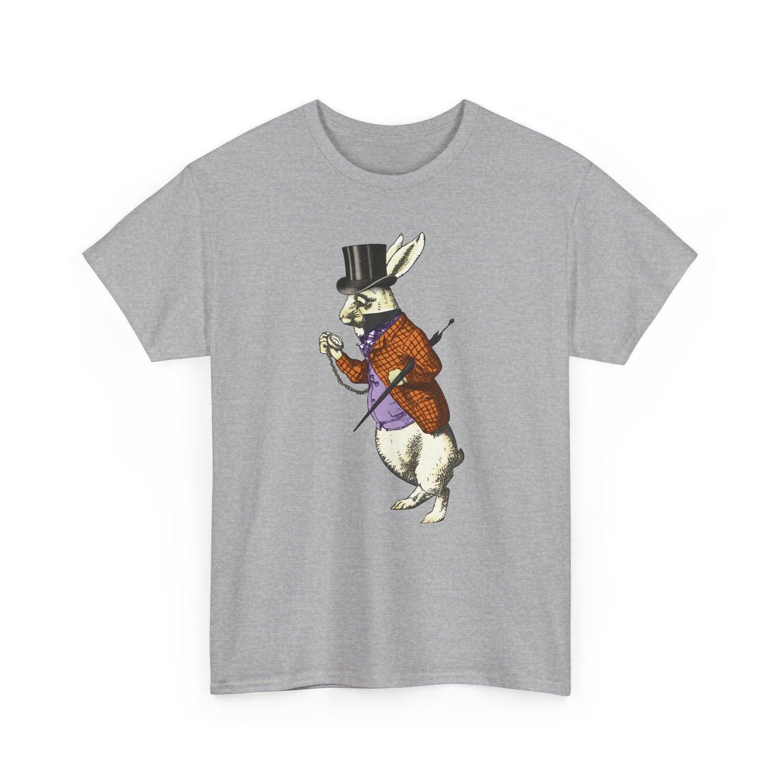 White Rabbit t-shirt, Alice in Wonderland shirt, pocket watch rabbit tee, Wonderland costume shirt, Halloween Alice tee, Lewis Carroll shirt, unisex heavy cotton tee, classic illustration shirt, book lover t-shirt, whimsical Wonderland shirt, fantasy storybook clothing, cosplay rabbit shirt, Wonderland fan gift, vintage Alice shirt, literary apparel, Halloween costume tee